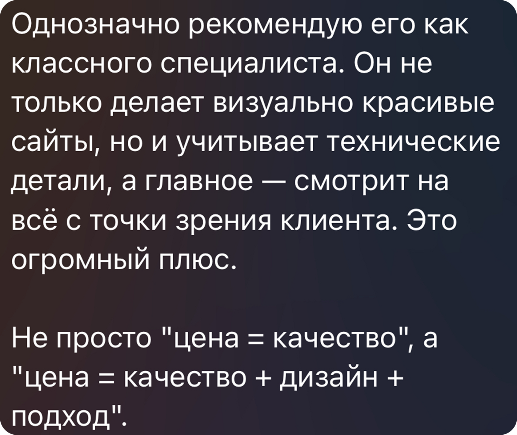Каждый элемент дизайна обоснован и выполняет какую-то цель, а не просто вставлен для галочки, чтобы было красиво. Мы в первую очередь маркетологи, потом уже дизайнеры.